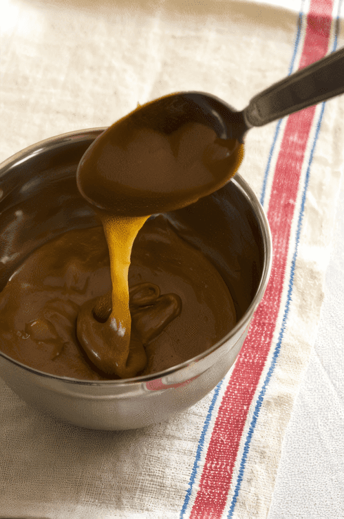 Снять кастрюлю с огня и добавить воды - осторожней, карамель зашипит и начнет брызгаться. Хорошо перемешать, вернуть кастрюлю на огонь и дождаться, пока растают образовавшиеся комки. Карамель готова к употреблению.