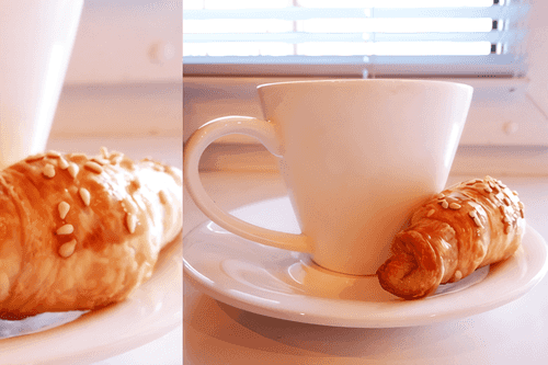 Переложить крем в в стеклянную миску, круассаны на блюдо и подавать. Можно кулинарным шприцем внести крем в круассаны, делая в них небольшие отверстия тонким ножом. И так и так получается очень вкусно.