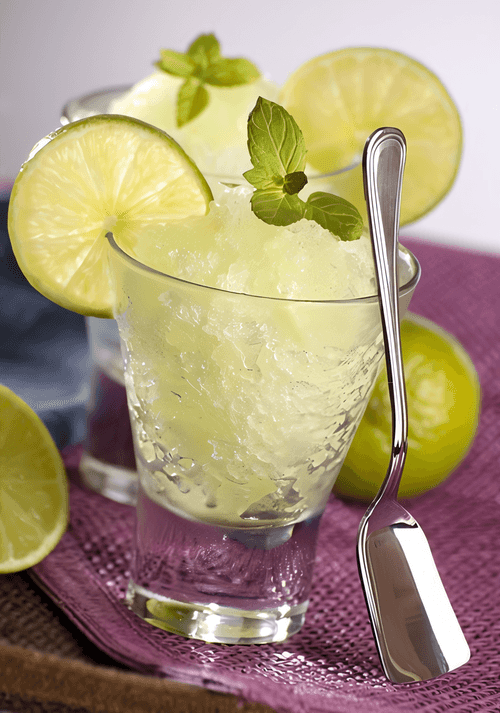 Взбейте граниту вилкой, разложите по креманкам и украсьте дольками лайма.