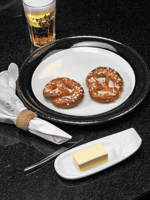 Брецель — культовая выпечка немецкой кухни с богатой историей. Его узнаваемая форма, скрученная в элегантный узел, символизирует единство и традиции. Возникший еще в Средневековье, он стал любимым лакомством по всей Германии, особенно в Баварии. Брецель отличается воздушной текстурой и аппетитной корочкой, а благодаря содовой обработке приобретает характерную хрусткость и насыщенный вкус. Легкая солоноватость удачно дополняет мягкость теста, создавая гармоничный контраст. Его подают как самостоятельный перекус, к пиву или с различными соусами. Классический брецель не только вкусен, но и несет в себе дух вековых немецких традиций, оставаясь символом уюта и гостеприимства.