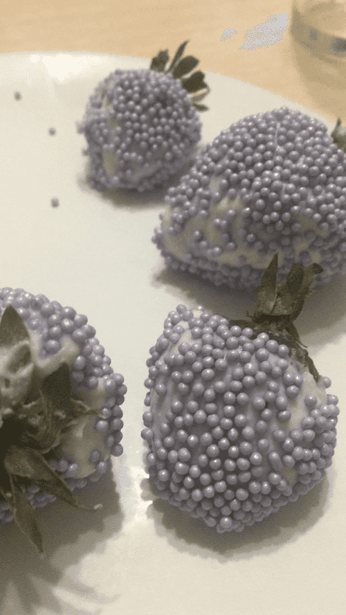 Держа ягоды за хвостики, окунайте в крем, затем обваливайте в кондитерских украшениях.