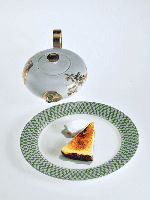 Охлажденный чизкейк посыпать сахаром и обдать пламенем из кулинарной горелки.