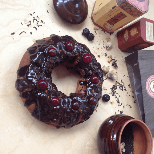 Готовим ганаш: 170 мл сливок нагреваем на водяной бане, но не кипятим. Как только они будут близки к закипанию, добавляем в них поломанный на маленькие дольки шоколад, и, постоянно помешивая, ждем превращения в эмульсию, т.е. в совершенно гладкую и глянцевую субстанцию. Готовым ганашем обмазываем весь торт, и помещаем его в холодильник как минимум на час, максимум — на ночь.
