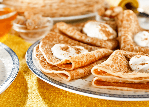 Тонкие блинчики из каштановой муки с рикоттой и медом