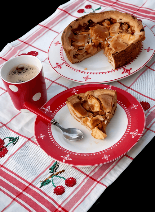 Открытый пирог с яблоками, горгонзолой и орехами — это утонченное сочетание сладкого и соленого вкуса. Исторически такие пироги пришли из европейских деревень, где хозяйки умело комбинировали сезонные продукты. Хрустящее слоеное тесто служит основой для насыщенного вкуса запеченных яблок, пикантной горгонзолы и орехов, создавая гармонию текстур. Кленовый сироп и лимонный сок добавляют тонкие нюансы сладости и свежести, а тимьян придает ароматную глубину. Этот пирог можно подавать теплым, чтобы расплавленный сыр обволакивал начинку, или охлажденным, раскрывая более насыщенные вкусовые оттенки. Идеально подходит для семейных ужинов и праздничных встреч, этот пирог станет украшением стола, удивляя сочетанием классических ингредиентов в новом прочтении.