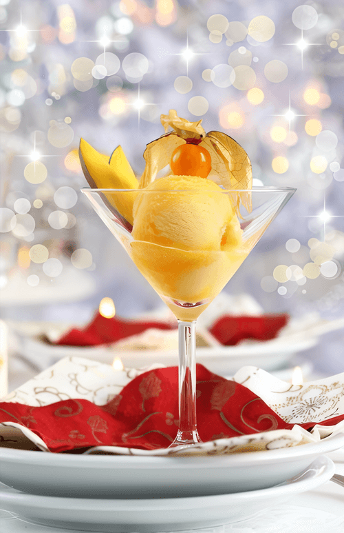 Шербет из печеного манго — это изысканный десерт паназиатской кухни, который сочетает в себе насыщенный карамельный вкус запеченного манго, нежную сладость банана и освежающую кислинку лайма. Исторически манго широко использовался в азиатских десертах, а запекание придает ему глубину вкуса. Сахарный сироп и фруктовое пюре создают гладкую текстуру, а процесс замораживания превращает смесь в прохладный и освежающий шербет. Этот десерт идеально подходит для летнего времени, предлагая легкость и натуральную сладость без лишней приторности. Подавайте его в охлажденных чашах или дополните кусочками свежих фруктов для контраста текстур. Восхитительное лакомство, дарящее ощущение тропической свежести!