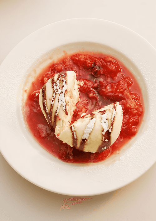 Санди с клубнично-ананасовым соусом — это утонченное французское лакомство, сочетающее свежесть ягод и экзотическую сладость ананаса. Его происхождение связано с искусством создания гармоничных десертов, где каждый ингредиент подчеркивает вкус другого. Нежное ванильное мороженое в компании яркого фруктового соуса дарит прохладу и свежесть, а тонкие цитрусовые нотки лимонного сока добавляют легкую кислинку. Этот десерт идеально подходит для летних вечеров или романтических ужинов, когда хочется насладиться чем-то легким, но изысканным. Украшенный мятой, он не только радует глаз, но и усиливает аромат, делая каждую ложку настоящим наслаждением.