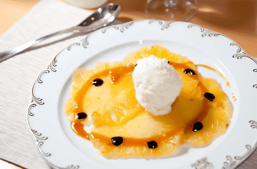 Ананас с соусом из манго и рома — это воплощение ярких вкусов Карибского региона. Этот десерт сочетает в себе сладость спелого ананаса, насыщенность манго и пикантную нотку темного рома, придающую глубину вкусу. Лайм добавляет свежесть, а сахар позволяет настроить баланс сладости по вкусу. Исторически ром — один из ключевых элементов карибской кухни, а манго и ананас — символы тропического изобилия. Это блюдо идеально подходит для легкого, освежающего десерта на солнечный день, подчеркивая богатство фруктов и экзотические ароматы. Подавать можно охлажденным, украсив листиками мяты или дроблеными орехами для дополнительной текстурной игры. Наслаждайтесь этим кулинарным путешествием в тропики!