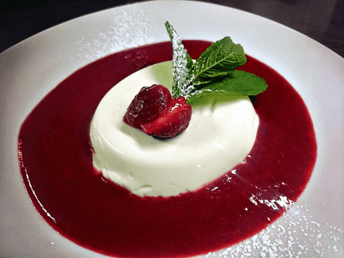 Когда желе застынет, достать формочки из холодильника, на несколько секунд опустить в горячую воду, вынуть панна-котту и украсить клубничным соусом.