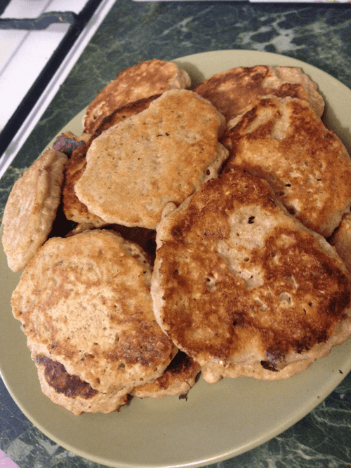 Жидкое тесто небольшими порциями выливать на сковородку и обжаривать с обеих сторон до золотистого цвета.