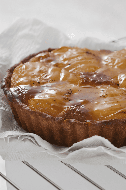 Грушевый тарт на шоколадно-миндальном тесте — элегантное воплощение французского кондитерского искусства. Нежное шоколадное тесто, обогащенное молотым миндалем, создает идеальную основу для сочных ломтиков груши. Легкая кислинка лимона подчеркивает сладость фруктов, а яблочное желе придаёт тарту глянцевый финиш, словно произведению искусства. Этот десерт восходит к традициям французской кухни, где изысканность сочетается с натуральными ингредиентами. Он идеально подходит для неспешных чаепитий и торжественных случаев, раскрывая глубокие шоколадные нотки и фруктовую свежесть в каждом кусочке. Великолепное сочетание текстур и вкусов делает его настоящей жемчужиной гастрономии.