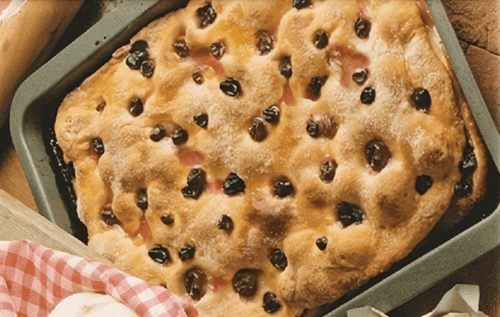 Замесите 250 грамм дрожжевого теста с 4 столовыми ложками оливкового масла и 50 гаммами сахара.