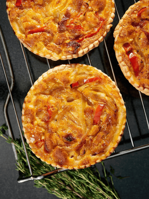 Киш с луком — классическое блюдо французской кухни, происходящее из региона Лотарингия. Его нежная основа из хрустящего песочного теста идеально сочетается с ароматной начинкой из карамелизированного лука, сладкого перца и пряных трав. Добавление меда придает легкую сладость, а эмменталь раскрывает насыщенность вкуса, создавая гармонию между мягкостью и пикантностью. Киш прекрасно подойдет как основное блюдо для уютного обеда, так и для изысканной закуски на праздничном столе. Благодаря своей универсальности он может быть дополнен различными ингредиентами и подан как теплым, так и охлажденным. Этот киш подарит наслаждение каждому, кто ценит традиции французской кухни и богатство вкусовых оттенков.
