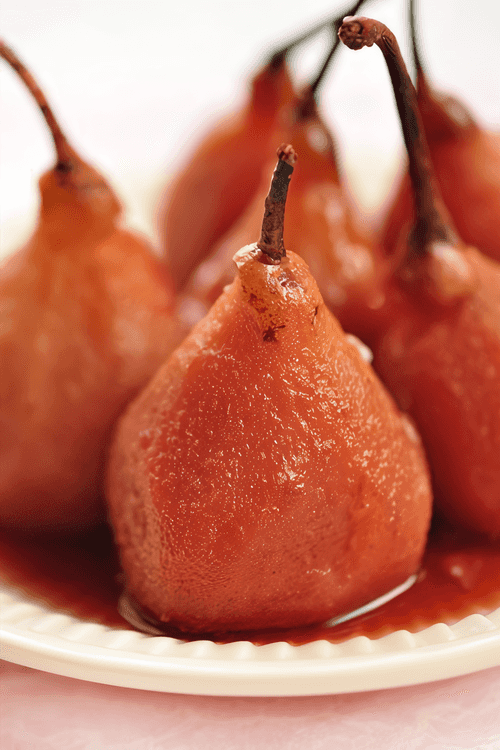 Переложите груши на блюдо и полейте сиропом. Охладите 15 минут и подавайте.