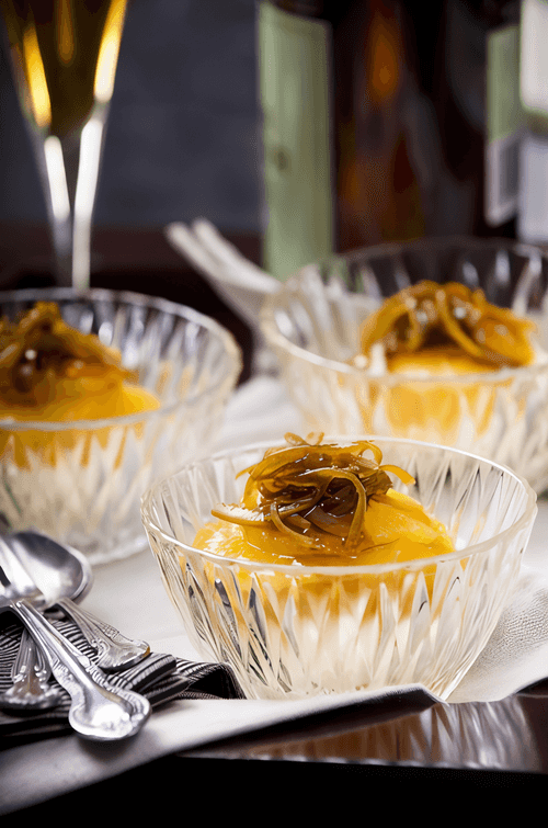Ванильный рисовый пудинг с глазированными апельсинами — изысканное блюдо европейской кухни, сочетающее нежность рисового крема с освежающей сладостью карамелизированных цитрусовых. Этот десерт уходит корнями в традиции создания сливочных пудингов, популярных во Франции и Италии. Крупнозернистый рис арборио наполняется ароматом натуральной ванили, а воздушные взбитые сливки придают ему легкость. Глазированные апельсины, сваренные в медово-сахарном сиропе, добавляют яркие оттенки вкуса — сладкие, с лёгкой горчинкой, которые идеально дополняют кремовую текстуру пудинга. Подаётся охлаждённым, украшенным сияющими ломтиками цитрусовых и сиропом, он станет украшением любого стола, будь то уютный семейный ужин или торжественное угощение.