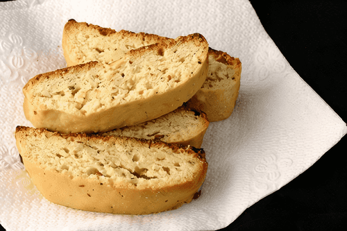 Слегка охладите и порежьте по диагонали ломтиками. Снова выложите на противень и отправьте в духовку еще на 20 минут, перевернув 1 раз. Охладите на решетке.