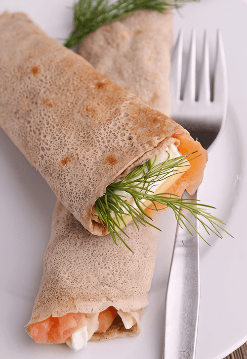 Блины, приготовленные с добавлением гречневой муки, обладают уникальным ореховым оттенком во вкусе и имеют привлекательный загорелый цвет. Обязательно следует использовать пшеничную муку, иначе тесто не удержится и распадется на кусочки. Эти блины можно подать как с гречишным медом, так и в несладком варианте — с соленой рыбой и сметаной. На следующий день их стоит обжарить на сковороде, и они превратятся в хрустящие галеты.