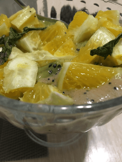 Этот восхитительный фруктовый десерт с бананово-маковым соусом — настоящая находка для любителей легких и освежающих сладостей. Его корни уходят в традиции европейской кухни, где простота сочетается с изысканностью вкусовых оттенков. Бархатистая текстура бананового соуса гармонично дополняется тонкими ореховыми нотками мака, а сочные слои яблок, винограда, киви и апельсина создают удивительную палитру вкусов. Подается в стеклянном бокале, где каждый слой идеально виден, пробуждая аппетит еще до первой ложки. Украшенный свежей мятой, он приносит не только гастрономическое удовольствие, но и чувство легкости. Этот десерт отлично подходит для летних вечеров, когда хочется чего-то сладкого, но при этом свежего и ненавязчивого.