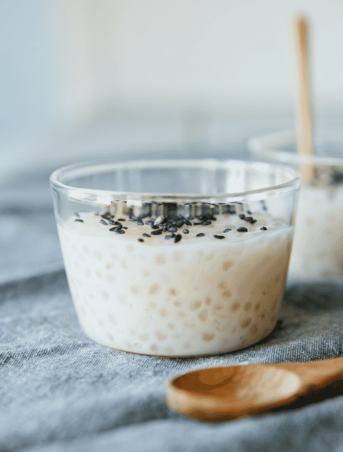 Тапиока на миндальном молоке с черным кунжутом