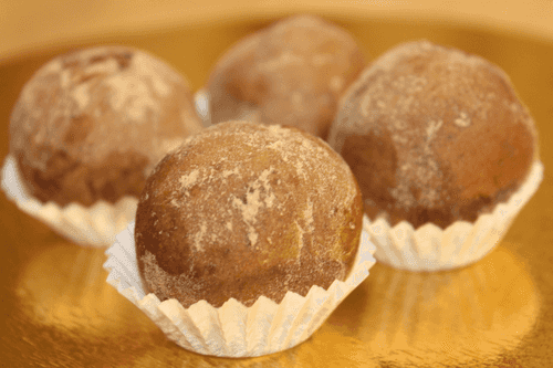 В остывшую жидкость постепенно добавлять, тщательно помешивая, сухое молоко — столько, сколько вберет жидкость. Ваша цель — густая шоколадная паста. Эту пасту помещаем в холодильник, где она застывает до массы, из которой можно лепить шарики-трюфели любого желаемого размера.