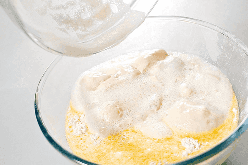Приготовить опару из дрожжей, четверти стакана теплой воды, одной чайной ложки муки и одной чайной ложки сахара. Поставить в теплое место и дать подняться (на это уйдет примерно двадцать — двадцать пять минут). Белки отделить от желтков.
