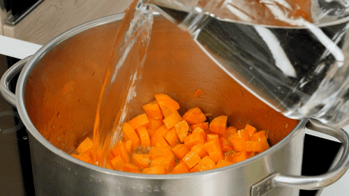 Переложить ее в кастрюлю, залить на три четверти водой и тушить на среднем огне десять минут.