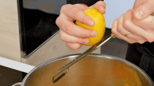 Натереть имбирь и цедру лимона, нарезать на четвертинки курагу.