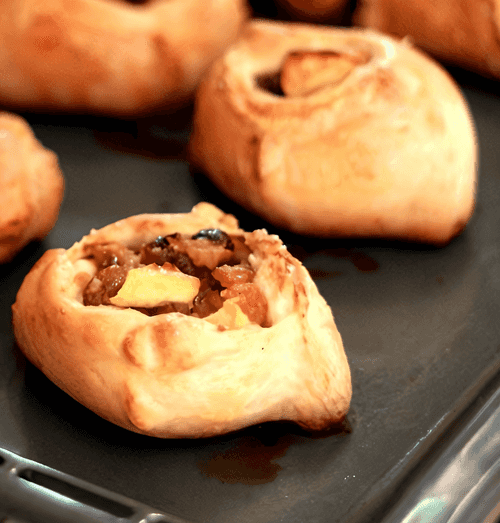 Начинка готова. Дальше простор для фантазии. Если делать открытые коробочки, как я, то тесто и начинку нужно аккуратно смазать яйцом и присыпать щепоткой сахара каждую коробочку. Выпекать при 200 градусах 10 минут и еще 10 — при 180.