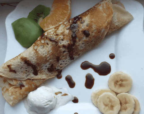 Блинчики с мороженым и фруктами