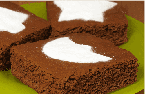 Затем разрезать на квадратики. При желании, можно из бумаги сделать трафарет. Посыпать сахарной пудрой, аккуратно убрать трафарет.