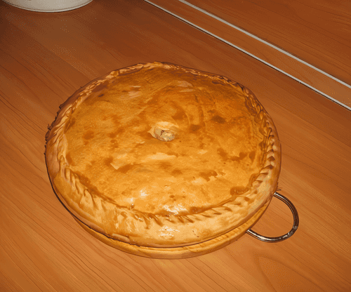 Курник с картофелем и курицей — традиционный русский пирог, который издавна подавали на праздничный стол. Его название происходит от слова «курник», что означает куриный пирог. Нежное дрожжевое тесто, пропитанное сливочным маслом, заключает в себе сочную начинку из куриного филе и картофеля, придавая блюду удивительную нежность и насыщенность. Легкий аромат жареного лука дополняет вкус, создавая гармонию ингредиентов. Курник идеально подходит для семейных ужинов и торжеств, его подают горячим, с румяной корочкой, а также сочетают с различными соусами и зеленью. Это не просто блюдо, а часть русской кулинарной истории, олицетворяющая гостеприимство и уют.