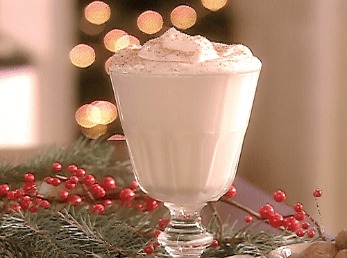 Опционально: белки взбейте до мягких пиков. С чайной ложкой сахара взбейте до жестких пиков и добавьте в эггног.