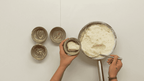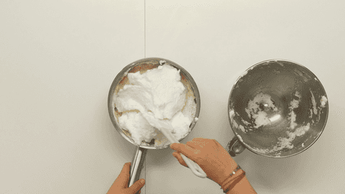 Взбить белки в плотную пышную массу и по частям добавить в пюре, добиваясь однородности смеси.