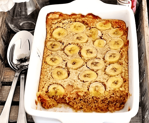 Овсяная запеканка с бананами – это уютное и питательное блюдо русской кухни, которое сочетает в себе нежность овсяных хлопьев и сладость спелых бананов. Считается, что рецепты подобных запеканок возникли из традиции готовить простые, но сытные блюда для всей семьи. Запеканка обладает мягкой текстурой, приятно пропитанной ароматом меда и легкой сливочной ноткой молока. Она идеально подходит для завтрака или полдника, заряжая энергией и создавая ощущение домашнего уюта. Ее можно подавать теплой, с йогуртом или орехами, дополняя вкус интересными акцентами. Это блюдо легко готовится, не требует сложных ингредиентов, а его польза для организма делает его отличным выбором для здорового питания.