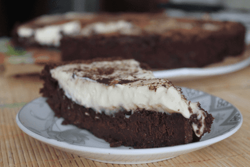 Растворите кофе в теплой воде, добавьте ванилин и соль. Добавьте к шоколадной смеси.