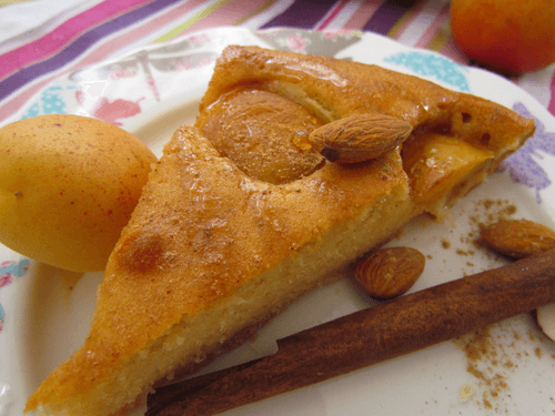 Сверху на тесто разложить половинки абрикосов срезом вниз. Выпекать 30 минут.