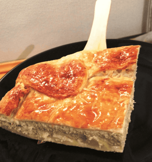 Пирог из слоеного теста с сельдью — необычное блюдо русской кухни, удивляющее своей гармонией вкусов. Традиция использовать соленую рыбу в выпечке берет начало из деревенской кулинарии, где простые ингредиенты превращались в сытные угощения. Здесь сочетание нежного слоеного теста, пикантного филе сельди и тонких кружочков картофеля создает насыщенный, мягкий, но в то же время выразительный вкус. Легкая кремовая начинка из рыбы, яиц и лука делает пирог сочным, а тонкое тесто позволяет всем составляющим раскрыться в полной мере. Подается горячим, и лучше всего дополняется сметанным соусом или легким салатом. Этот пирог хорош как праздничное блюдо, так и уютное домашнее угощение, способное удивить своей оригинальностью и согреть душу.