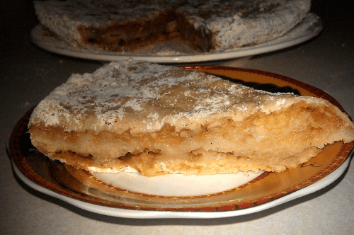 Яблоки очистить от кожицы, натереть на крупной терке, сок не сливать. Добавить по желанию мак или орехи.