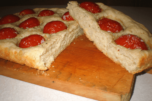 На подошедшее тесто выкладываем, немного углубляя, помидоры, посыпаем орегано, немного смачиваем оливковым маслом и оставляем еще на 30 минут в теплом месте.