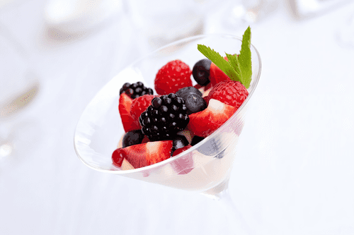 Когда дойдет до сладкого, достать крем, разбавить его немного сливками, размешать венчиком и подавать с ягодами.