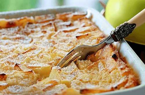 Новогодний яблочный десерт — это уютное сочетание ароматов зимних праздников и домашнего тепла. Его история уходит корнями в традицию использования яблок в зимней выпечке, когда хозяйки создавали простые, но изысканные сладости из доступных ингредиентов. Десерт восхищает нежной текстурой запечённых яблок, пропитанных воздушным яичным кремом с нотками ванили и апельсина. Хрустящая основа из бисквитных крошек придаёт ему особую выразительность, а завершающие штрихи — корица и сахарная пудра — дарят ему праздничный аромат. Этот десерт идеален для семейных вечеров, когда хочется согреться и окунуться в атмосферу зимнего волшебства.