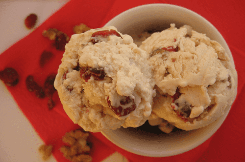 Сливочное мороженое с вяленой клюквой и грецким орехом
