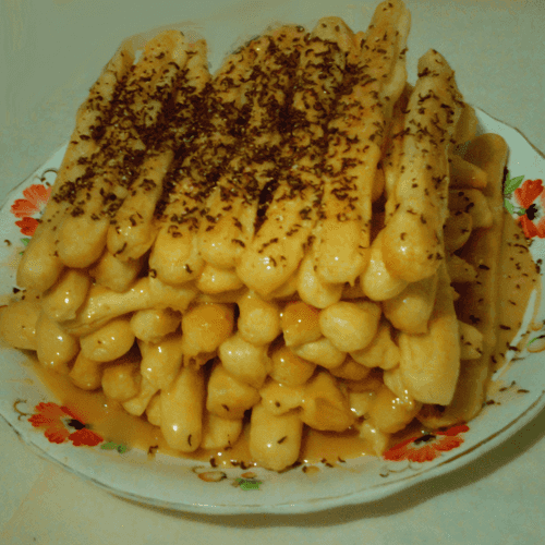 Торт из заварных палочек с вареной сгущенкой — это удивительное сочетание воздушного теста и карамельной сладости сгущенного молока. Рецепт, несмотря на его изысканный вкус, прост в приготовлении, а результат поражает нежностью и насыщенным ароматом. Заварные палочки, золотистые и хрустящие снаружи, после пропитки сгущенкой становятся мягкими и сочными, образуя многослойный десерт, напоминающий сладкие поленья. Исторически подобные десерты встречаются в различных кухнях мира, но этот вариант, вдохновленный китайской традицией использования сгущенного молока, обрёл популярность благодаря своей простоте и доступности ингредиентов. Торт прекрасно подходит для уютных семейных посиделок, праздников и просто для наслаждения чашкой чая или кофе. Главное — дать десерту настояться, чтобы его вкус раскрылся в полной мере.