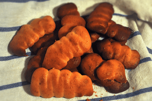 Столовой ложкой или кондитерским мешочком выложить на противень тесто небольшими порциями.