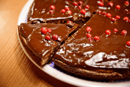 Шоколадный пирог с брусникой