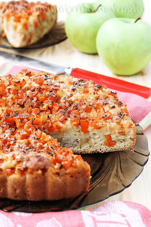 Открытый пирог с тыквой и яблоками — это нежное и ароматное угощение, которое воплощает тепло домашней выпечки. Это блюдо имеет корни в русской кухне, где тыква и яблоки всегда ценились за свою сладость и сочность. Благодаря сочетанию мягкой тыквы, освежающего яблока и легкого теста на кефире, пирог приобретает гармоничный вкус, в котором сладость фруктов сбалансирована кислинкой лимонного сока. Пирог идеально подходит как к чаю в уютной семейной обстановке, так и в качестве десерта для праздничного застолья. Особенность рецепта в использовании натертого замороженного сливочного масла, которое при запекании создает нежную, хрустящую корочку, делая каждую порцию по-настоящему восхитительной.