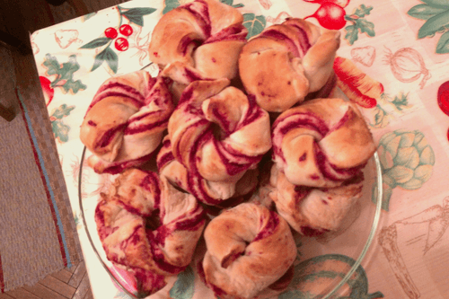 Веночки с клюквенным джемом — это утончённый десерт русской кухни, несущий в себе уют и домашнее тепло. В основе рецепта воздушное дрожжевое тесто, которое приобретает нежную текстуру благодаря молоку и сливочному маслу. Клюквенный джем, пропитывающий слои теста, наполняет веночки яркой кислинкой, создавая баланс между сладостью и свежестью. Исторически выпечка в форме венков символизировала единство и гармонию, а этот вариант особенно хорошо дополняет семейные чаепития. Веночки подают теплыми, посыпанными сахарной пудрой, сопровождая их ароматным чаем или кофе. Их насыщенный вкус и аппетитный вид делают их идеальным выбором для праздничных вечеров и уютных посиделок.