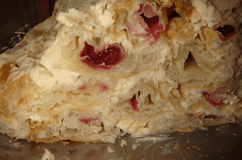 Торт из слоеных трубочек с вишней