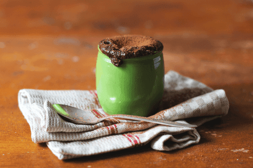 Разлить «тесто» по формочкам, выпекать 15 минут. Остудить суфле в закрытой духовке 10 минут, подавать, посыпав какао.