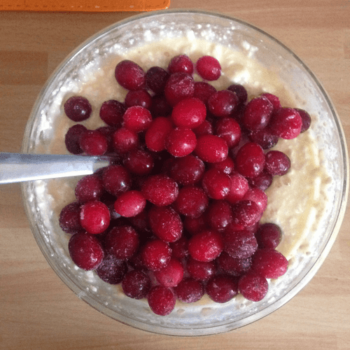 Добавить в блюдо замороженную клюкву и снова перемешать.